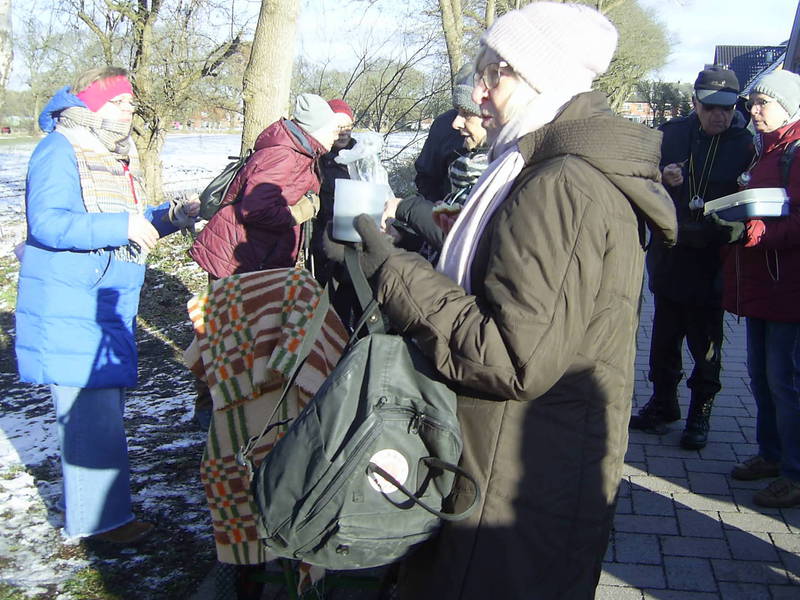 Wir trafen uns in Sahlenburg und starteten vom Parkplatz des Restaurants Zimdars aus zu einer kleinen Wanderung in die nähere Umgebung. Natürlich durfte dabei unser Proviantwagen bestückt mit allerlei Leckereien zur Stärkung für unterwegs nicht fehlen. Zum Aufwärmen wurden wir zwischendurch zu einem lustigen Bewegungsspiel mit Musik animiert und bei einem Würfelspiel legten sich alle mächtig ins Zeug. Danach wurden noch die neuen Grünkohl-Könige/innen ermittelt, die die ehrenvolle Aufgabe haben, unser Grünkohl-Event im nächsten Jahr zu organisieren.